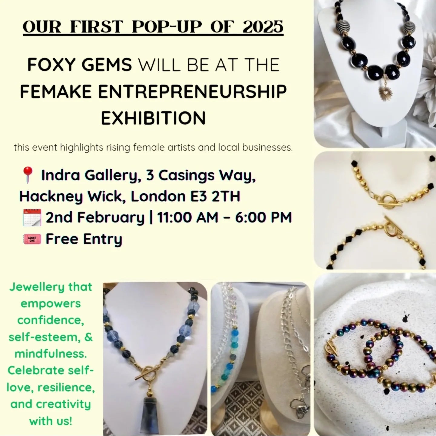 Hey, Foxy Gems family! ✨ We're not just online—we’re out and about, bringing our sparkling treasures to pop-ups and markets across London! From the bustling streets of Southbank to hidden gems in your neighbourhood, you can find us showcasing our handcrafted jewellery designed to inspire confidence, mindfulness, and self-love.