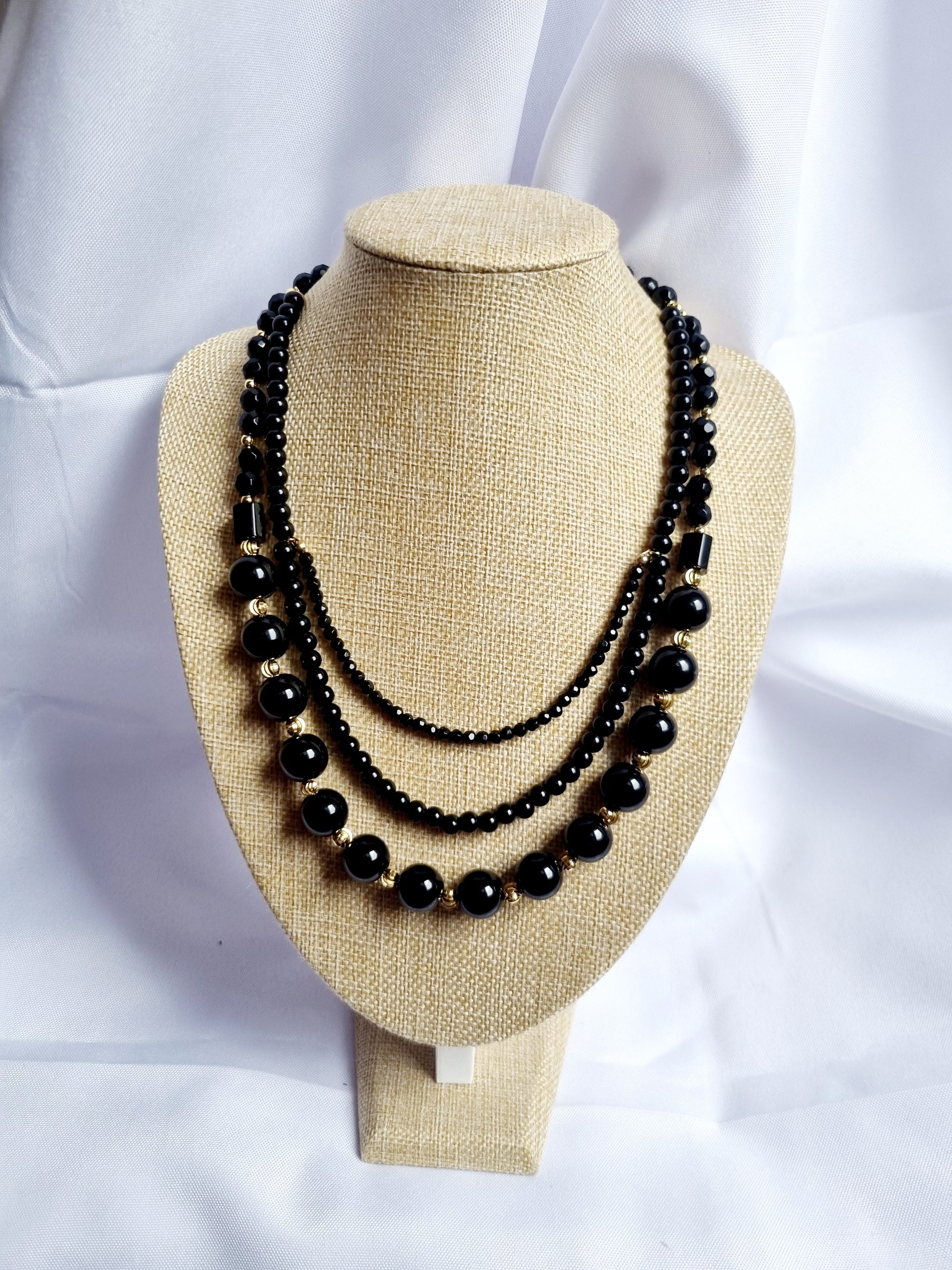 Celebrate your journey with the timeless elegance of the Layered Necklace Set from our Growth Collection. Handcrafted to inspire confidence and growth, this exquisite set features sleek black glass beads, luxurious gold-plated spacers, and a chic toggle clasp closure.