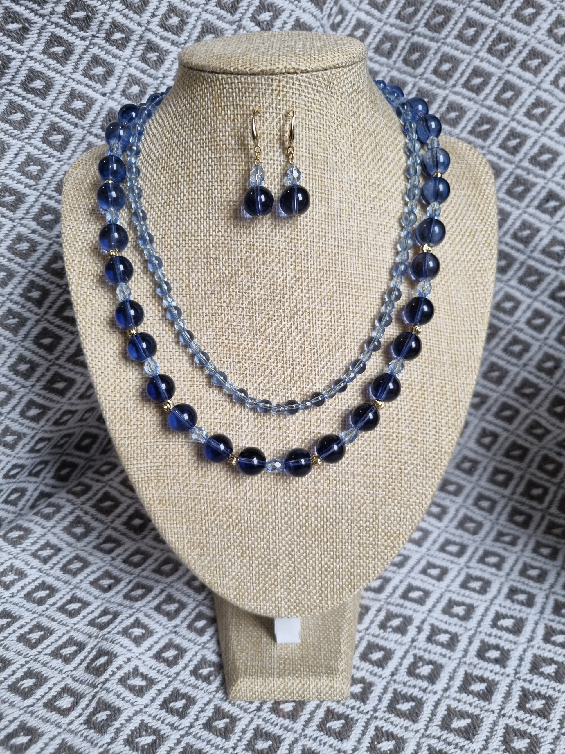Dive into tranquility with the Ocean Serenity Dual Layer Set. This stunning double-layer necklace features a harmonious blend of deep blue and transparent fractured glass beads, evoking the calming essence of ocean waves and the limitless sky. The layers symbolize depth and perspective, making it the perfect piece to remind you of your inner calm and resilience. Whether paired with casual or formal attire, this set is a versatile expression of elegance and mindfulness.